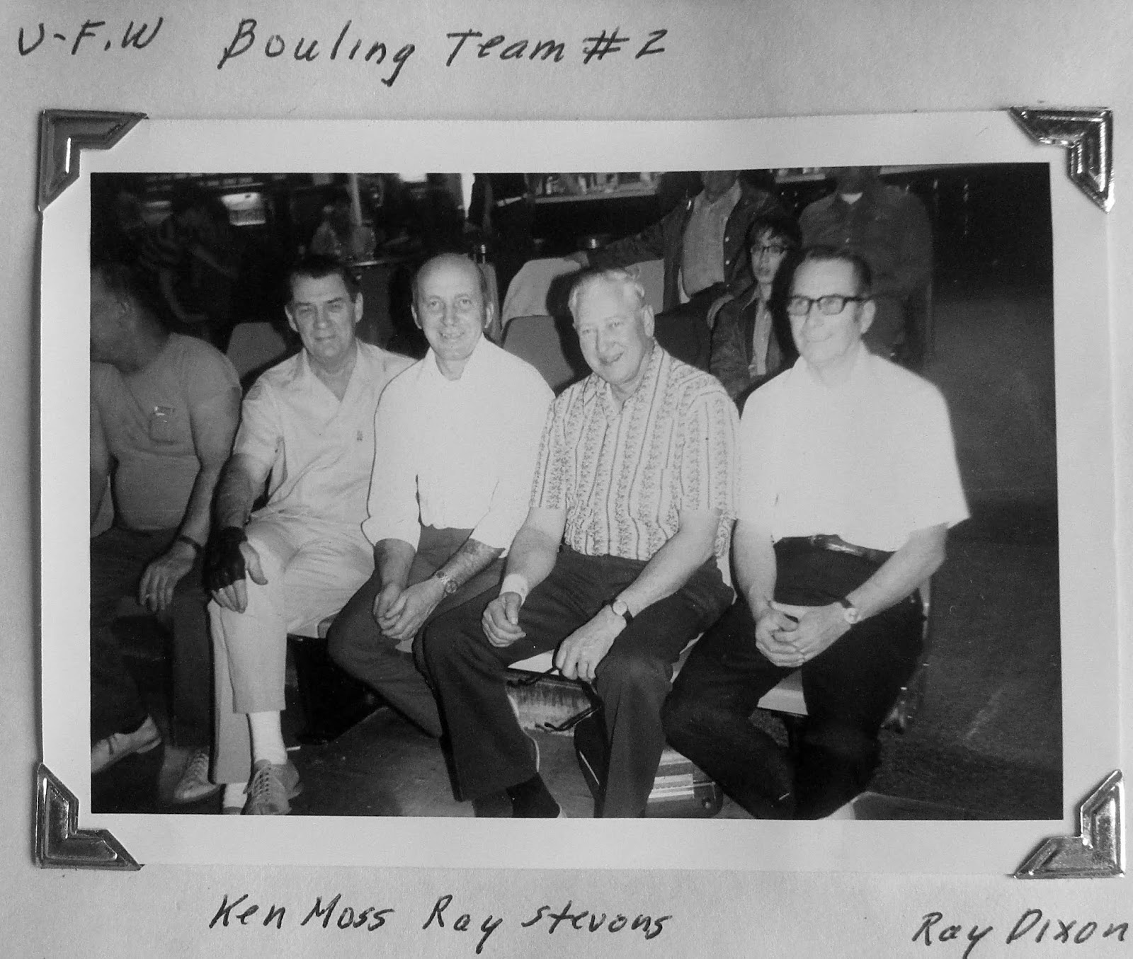 VFW bowling teams, action shots in the Pioneer Bowl alleys, and their Official Scorekeeper. 1973.