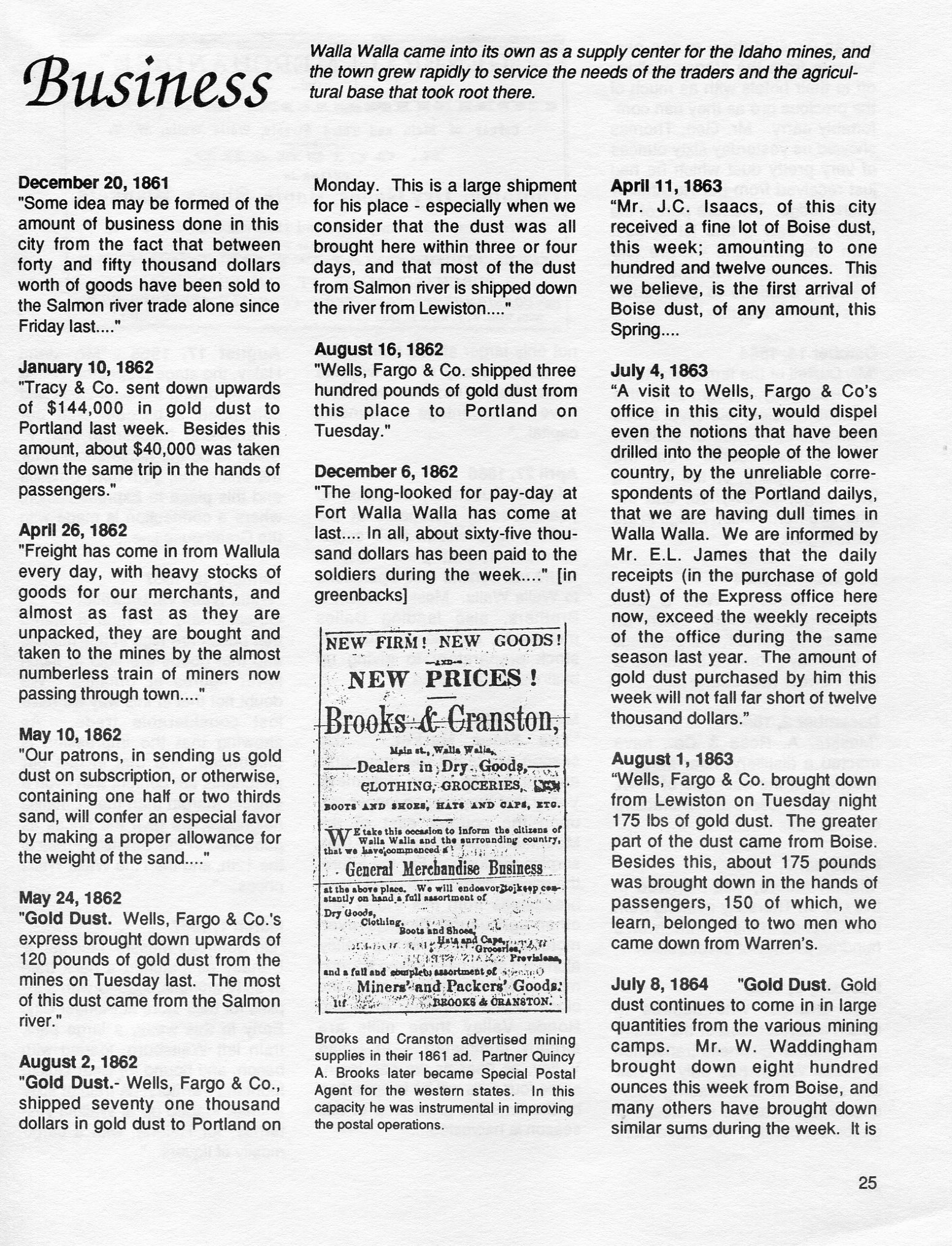 Walla Walla in the 1860s. Compiled from the Statesman newspaper by Alan Patera, and reprinted here with his permission. Part 2 of 3.