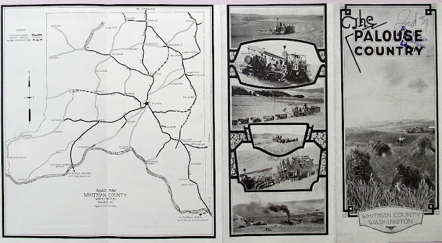 Palouse Country promotional brochure including road map of Whitman County, 1923